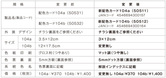 ◇ 対象商品 配色カード104a、配色カード104b